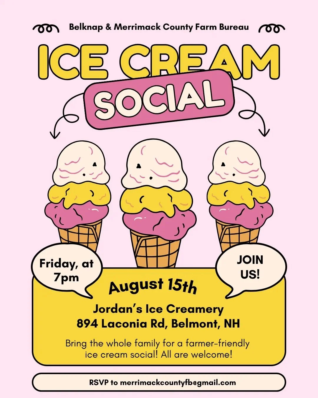 Belknap & Merrimack County Farm Bureau Ice Cream Social Friday, August 15, 2025 7:00 PM 8:00 PM Google Calendar ICS