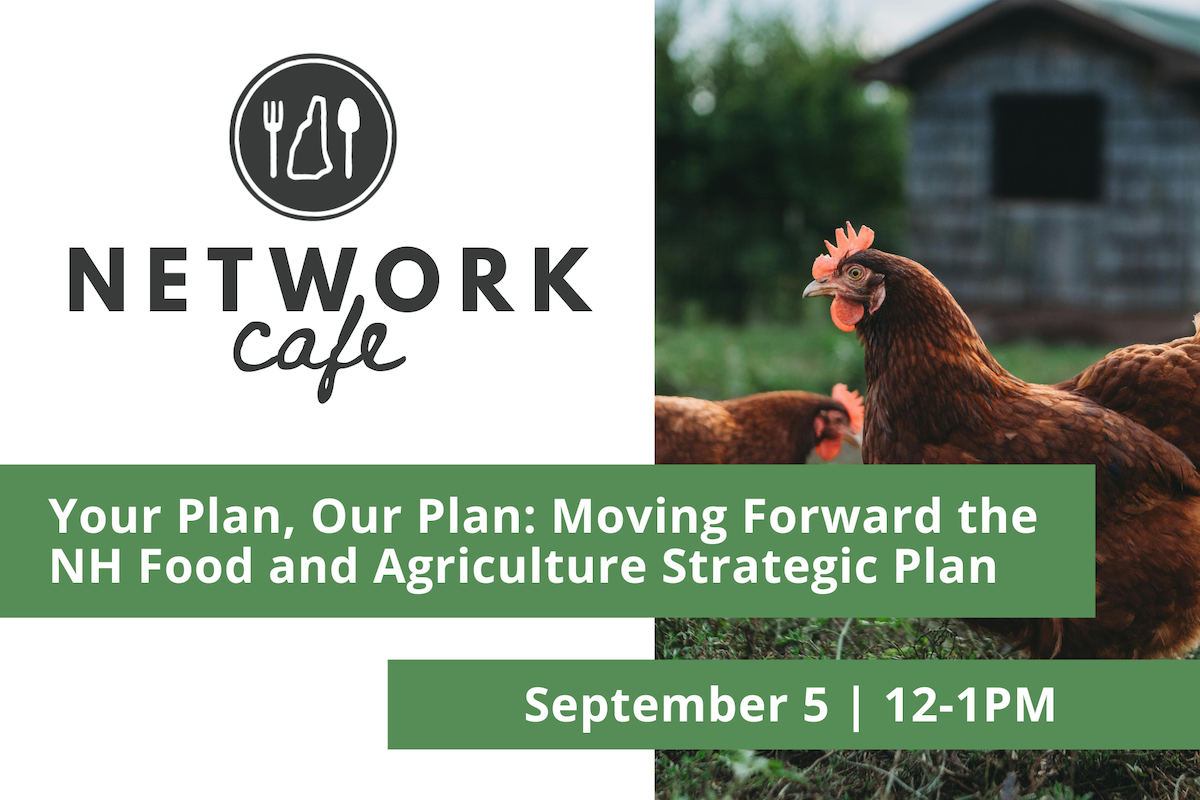 From strategic planning to strategic action: we’ve got a plan to move forward the plan and you’re a critical piece of it! Join the NH Food Alliance team during our September Network Café for an overview of the structure of Strategic Plan implementation and to learn about the various roles everyone can and will play in the process. Following the presentation and Q&A, we will dive into a lively discussion about work that has already begun on Strategic Plan recommendations to help you consider how you might get involved.